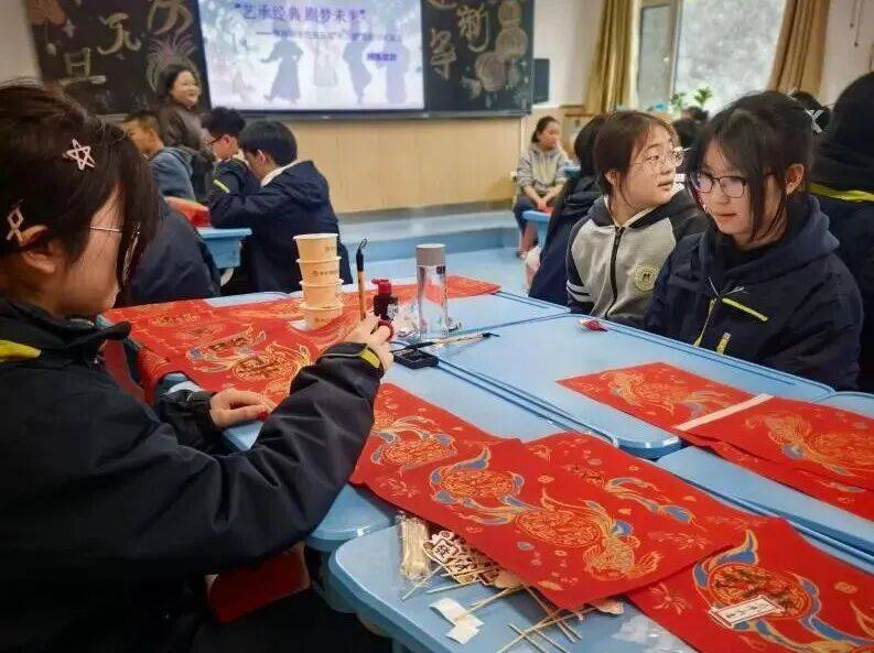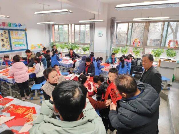 勾当依学生年段特点,匠心独运:一二年级冲弱手持彩剪,纸间裁出灵秀窗花,初窥纹样之妙取对称之美;三四年级学子提笔摹写“春”“福”,正在反正撇捺间体味汉字筋骨,将送新祈愿凝于方寸;五六年级同窗则铺展联纸,笔走龙蛇,或录先贤佳句,或书自创,于平仄对仗中文辞之雅。