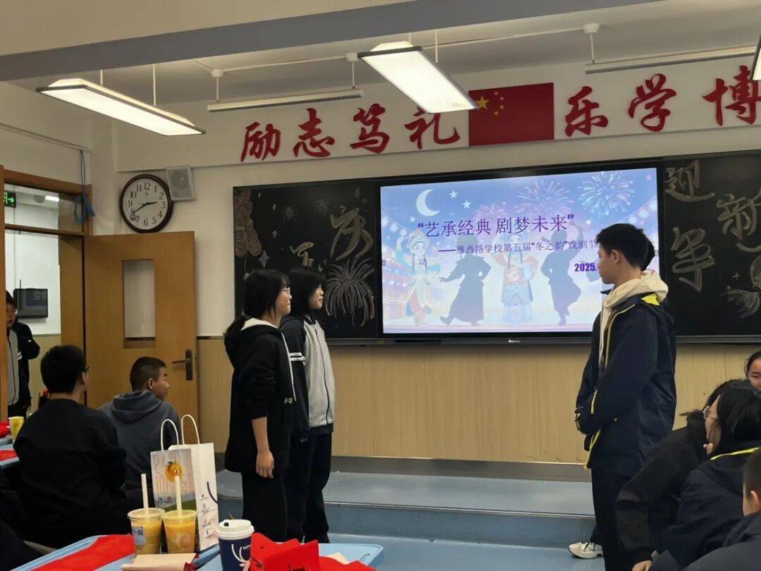 教室间红灯笼高挂,黑板报上“欢庆除夕”“送新年”的字样暖意融融,屏幕上“艺承典范,剧梦将来”的从题夺目亮眼,也为本次戏剧节定下了传承取立异的基调。