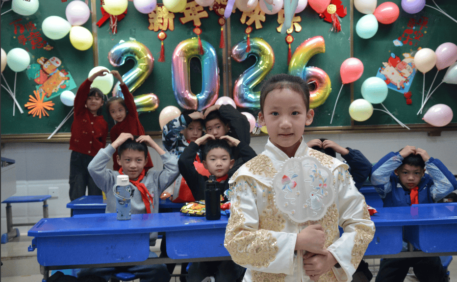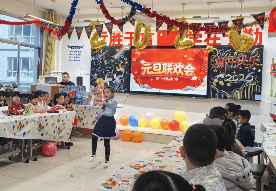 教室里各班除夕庆贺勾当如火如荼开展,同窗们正在创意互动和才艺比拼中尽情活力,用歌声、舞姿取巧思点亮了新年的第一抹荣耀。教室被彩带、气球点缀得非分特别温暖,掌声、喝彩声此起彼伏。大师正在舞台上尽情展现,正在互动平分享欢愉,充实展示了新时代少年儿童朝气兴旺、积极向上的风貌。