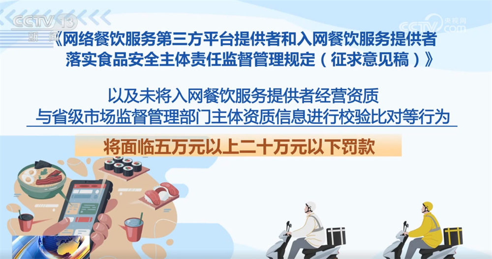 按照收罗看法稿,平台收到市场监视办理部分关于入网餐饮办事供给者违法违规行为消息等传递未采纳响应办法的;采纳办法后私行恢复入网餐饮办事供给者线上运营办事的;以及未将入网餐饮办事供给者运营天分取省级市场监视办理部分从体天分消息进行校验比对等行为将面对五万元以上二十万元以下罚款。